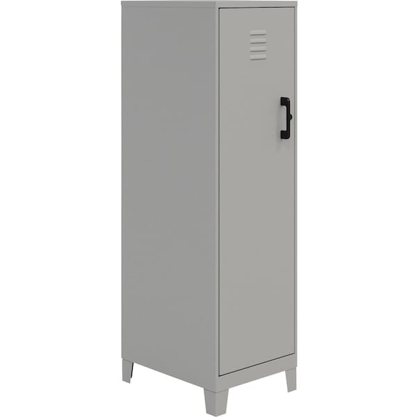 The versatile design of this personal locker makes it suitable for office and home use. Stylish, modern look will fit right in with your offices, classrooms, playrooms, basements and garages. The SOHO Locker adds a cool, industrial touch to your space. Sturdy and durable, welded steel construction provides long-lasting strength. Recycled content makes it an eco-friendly choice. Nonporous surface is easy to clean and disinfect. All you need is a damp cloth. Hinged door and a locking mechanism keep your belongings safe. Vented locking door allows airflow while protecting your privacy. Four built-in shelves are perfect for stashing schoolwork, organizing work supplies and putting away sporting equipment, toys and games. Each shelf can support up to 40 lb. to meet all your different needs. Built-in risers keep storage locker off your potentially damp floor. Locker ships fully assembled so you can get organized right away.