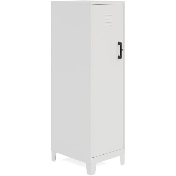 The versatile design of this personal locker makes it suitable for office and home use. Stylish, modern look will fit right in with your offices, classrooms, playrooms, basements and garages. The SOHO Locker adds a cool, industrial touch to your space. Sturdy and durable, welded steel construction provides long-lasting strength. Recycled content makes it an eco-friendly choice. Nonporous surface is easy to clean and disinfect. All you need is a damp cloth. Hinged door and a locking mechanism keep your belongings safe. Vented locking door allows airflow while protecting your privacy. Four built-in shelves are perfect for stashing schoolwork, organizing work supplies and putting away sporting equipment, toys and games. Each shelf can support up to 40 lb. to meet all your different needs. Built-in risers keep storage locker off your potentially damp floor. Locker ships fully assembled so you can get organized right away.