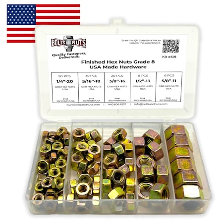 Grade 8 Fine Thread Finished Hex Nuts, SAE Flat & Split Lock Wshrs Hardware Assortment - 351 Pcs