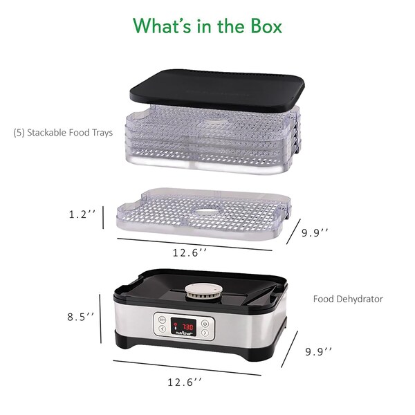 The NutriChef Multi-Tier Digital Food Dehydrator features a 250 watt high-powered heating output and an adjustable temperature control of 95°F to 158°F that dehydrates food in hours! It produces nutritious food with very simple preparation because of its digital LCD display screen. It is stain-resistant and safe for placement on any kitchen or tabletop.