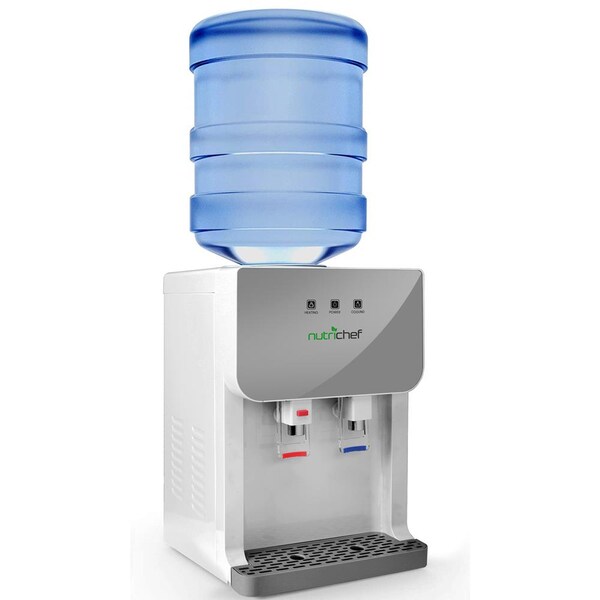 Features: - Child Safe, Innovative and Stylish Glass Panel - Time-Saving and Very Convenient To Use - Automatic Water Dispenser System - Simple Electric Plug-in Design - Ability to Dispense Both Hot & Cold Water - Simple & Hassle-Free Operation - Universal Compatibility with 3 or 5-Gallon Bottles/Jugs - Convenient Countertop / Tabletop Design - Top-Loading Water Bottle Style - LED Indicator Lights - Ultra-Quiet Operation - Convenient Spill Guard Drip Tray What's in the Box: - Water Dispenser Technical Specs: - Construction Material: Engineered ABS Housing + Coated Steel - Voltage: 110V/60Hz - Heating Power: 500W - Cooling Power: 80W - Cooling Current: 0.6A - Cold Water Temperature: 42.8-50° Fahrenheit (6 - 10° Celsius) - Hot Water Temperature: 185-203° Fahrenheit (85 - 95° Celsius) - Rated Cooling Capacity: 1.5L/hr(6?-10?)(42.8°F-50°F) - Rated Heating Capacity: 4.5L/hr (85°C-95?)(185°F-203°F) - Cold Tank Capacity: 2L - Hot Tank Capacity: 700ml - Power Cable Length: 5.9’ ft. - Product Dimension (L x W x H): 12.2'' x 12.6'' x 18.9'' -inches