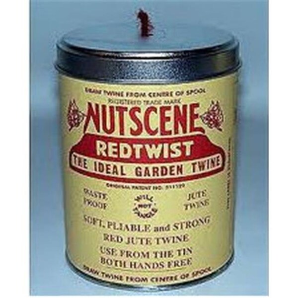 Nutscene Tin O Twine is best method around when it comes to gardening twine. No messy tangles to unravel and lost time. The soft. strong and biodegradable colored jute twine feeds through a hole in the center of the lid. The special make-up of the spool prevents tangles. so it's easy to just pull out the required amount and snip with scissors.Our garden twines come from Bosmere and are manufactured by Nutscene of Scotland. who have been making twine since 1922. Our Nutscene twines are of the higest quality. a natural jute product that is made from sustainable sources that is easily and safely composted.The 3 ply colored twine has unlimited uses around your garden and home that are too numerour to list. Comes in 6 different colors. black. green. lilac. natural. orange and red. These bright colors are perfect for gardening and crafts.Each Storage can contains 492 feet of 3 ply garden twine and keeps the twine clean and dry. making it is easy to locate. Tin measures 4.5 inches high and 3 inches diameter. We also sell spools to refill your tins. Weight 2 pounds. Choose your choice on our selection menu above.Color: Red.