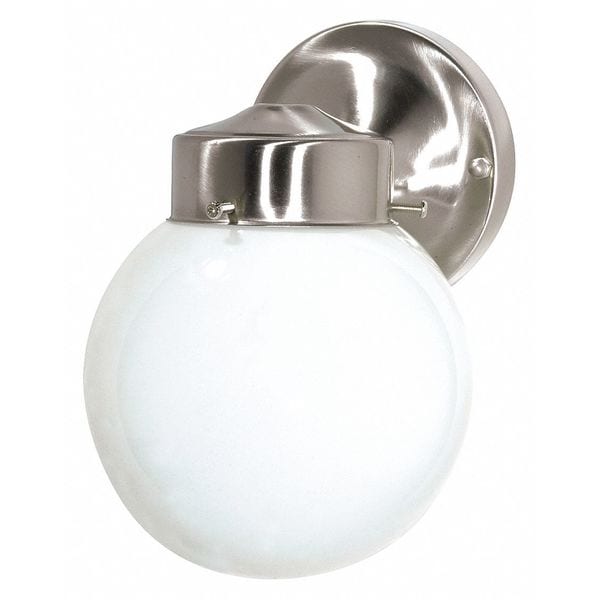 1-Light - 6in. - Porch Wall - With White Globe - Brushed Nickel Finish