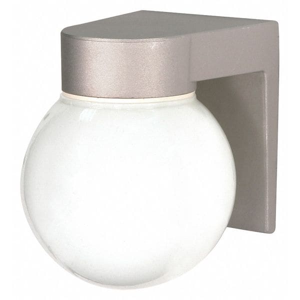 1-Light - 8in. - Utility Wall Mount - With White Glass Globe - Satin Aluminum Finish
