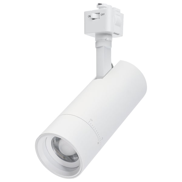 SATCO NUVO's TH5031 is a beam adjustable, matte white, 15 watt LED track head designed for compatibility with both Single Circuit and 2 Circuit J-Style track systems, enhancing its flexibility across various installation environments. This fixture features a 90-degree adjustable head and an adjustable beam spread range from 20 to 50 degrees, allowing for precise directional lighting. With five selectable color temperature options at installation and a high 90 CRI, this track head delivers crisp, accurate illumination. Ideal for galleries, retail settings, offices, and restaurants, this fixture combines performance and versatility in a clean, modern design.