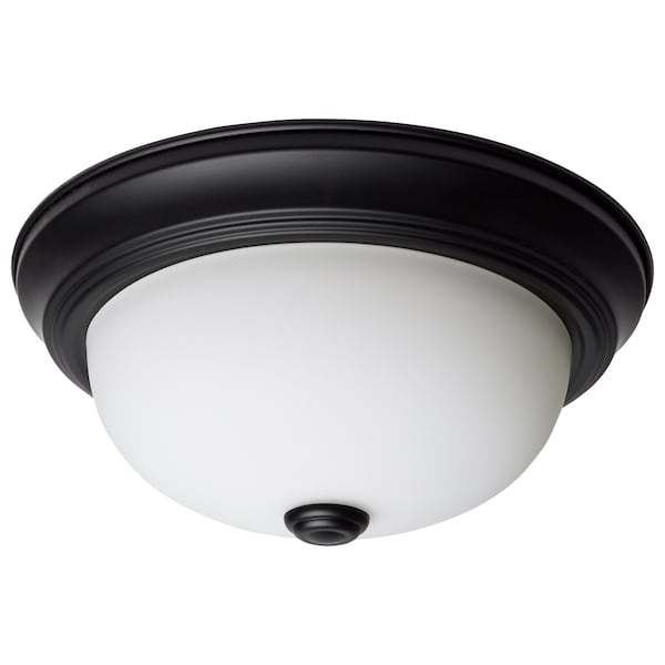 2-Light 11-Inch Flush Mount, Matte Black Finish Opal Glass