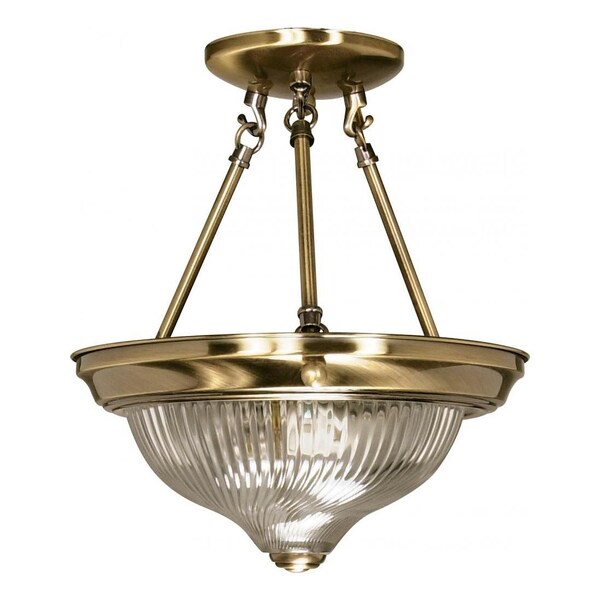 This Two Light Bowl Semi-Flush Mount has a Brass Finish.