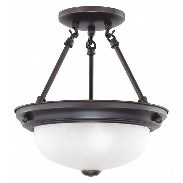 2-Light 60W Incandescent Semi Flush Fixture, Mahogany Bronze Finish