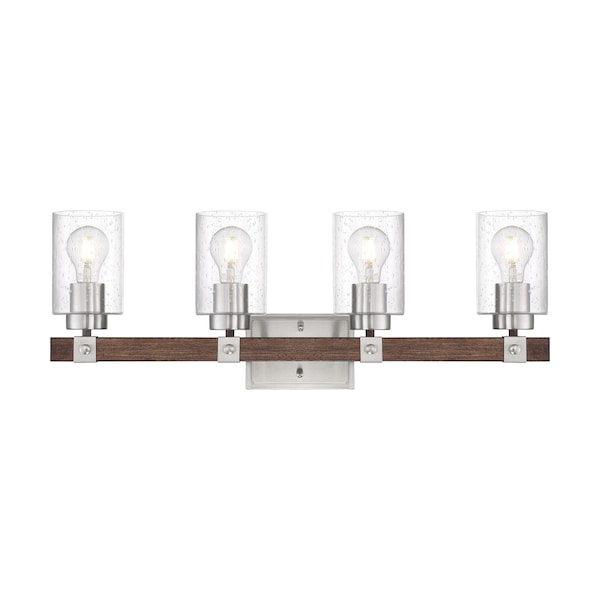 Arabel 4-Light Vanity - Brushed Nickel and Nutmeg Wood Finish with Clear Seeded Glass