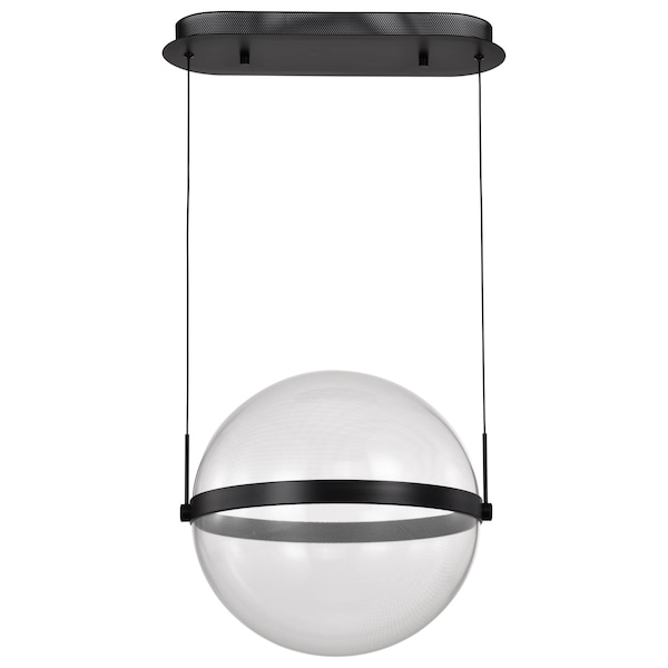 Designed with modern living in mind, the Arvada 62-2033 LED large pendant seamlessly integrates cutting-edge technology with timeless design. The sleek, cable-hung exterior is a canvas of illumination and intricate patterns, with a matte black finish and a perfect sphere of silk screened acrylic housing the light source. The integrated LED lighting not only enhances the visual appeal but also ensures energy efficiency, providing an eco-friendly solution that aligns with your commitment to a sustainable lifestyle. These pendants are the epitome of versatility, from dining rooms to kitchens, and more, the Arvada pendants are designed to captivate, setting the state for ambiance and unforgettable moments.