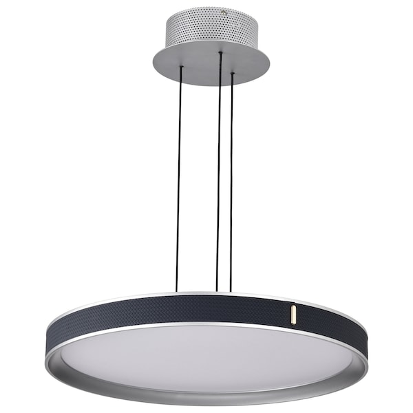 Illuminate your space with the Bandon 62-3001 LED pendant, where sleek meets chic in a dance of modern design. Finished in a sophisticated gray hue, with an acrylic lens, these fixtures are not just lights, they create a statement with the faux leather, deep blue band, say goodbye to dull illumination. It's not just about lighting a room, it's about lighting up your life with the latest in integrated LED, and fashion-forward design featuring flair and sophistication in a fun package.
