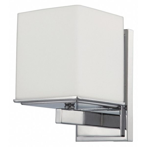 Bento 1 Light Vanity Fixture Satin White Glass Polished Chro