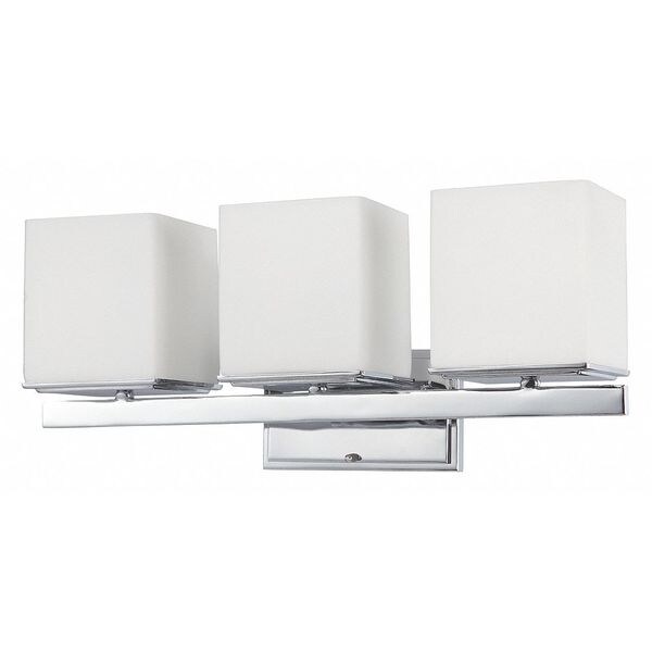 Bento 3 Light Vanity Fixture Satin White Glass Polished Chro
