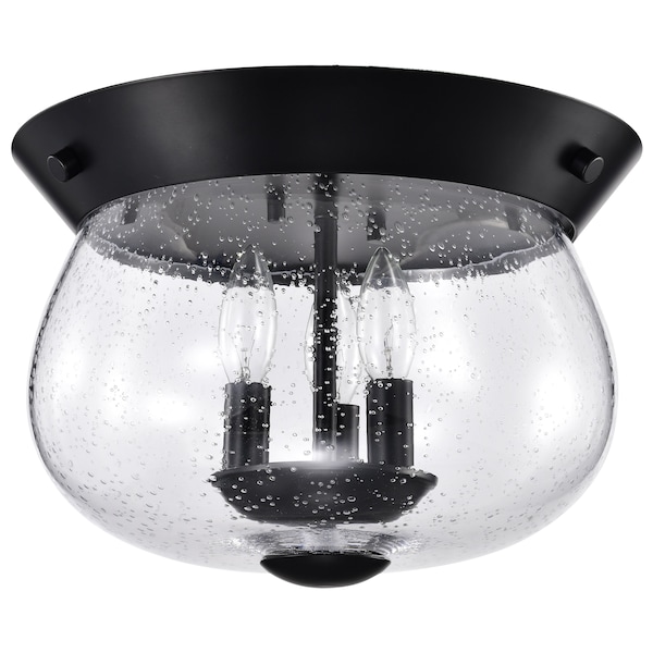 Boliver 3-Light Flush Mount Matte Black Clear Seeded Glass