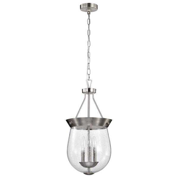Boliver 3-Light Pendant 11 in. Brushed Nickel Clear Seeded Glass