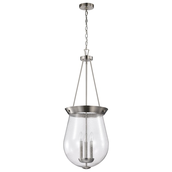 Boliver 3-Light Pendant 14 in. Brushed Nickel Clear Seeded Glass