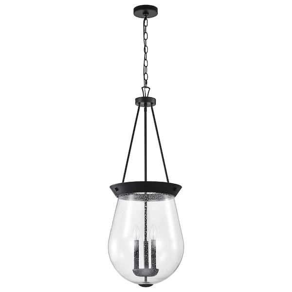 Boliver 3-Light Pendant 14 in. Matte Black Clear Seeded Glass