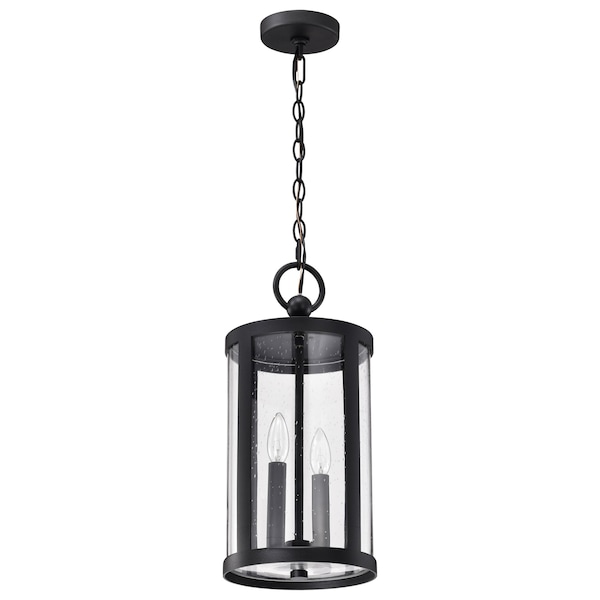 Broadstone - 2 Light Hanging Lantern - Matte Black with Clear Seeded Glass
