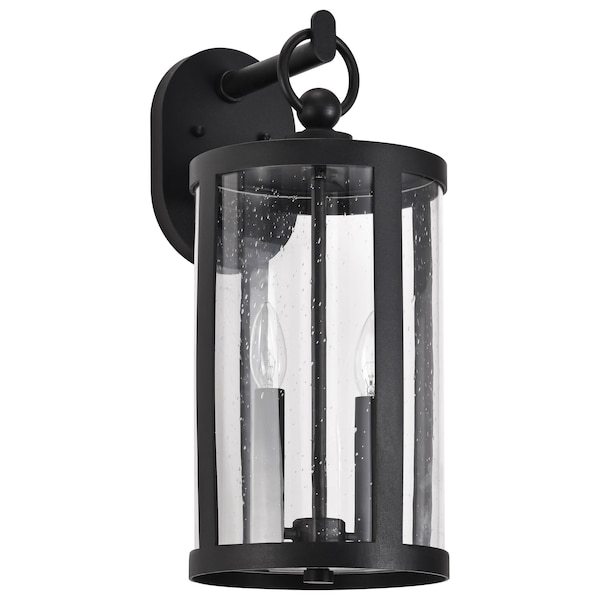 Broadstone - 2 Light Medium Wall Lantern - Matte Black with Clear Seeded Glass