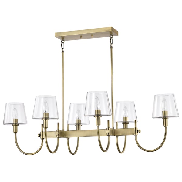 Brookside 6-Light Island Pendant Vintage Brass Clear Glass