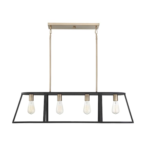 Chassis 4-Light Island Pendant Fixture - Copper Brushed Brass Finish with Matte Black Frame