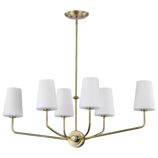 Cordello 6-Light Island Pendant Vintage Brass Etched White Opal Glass
