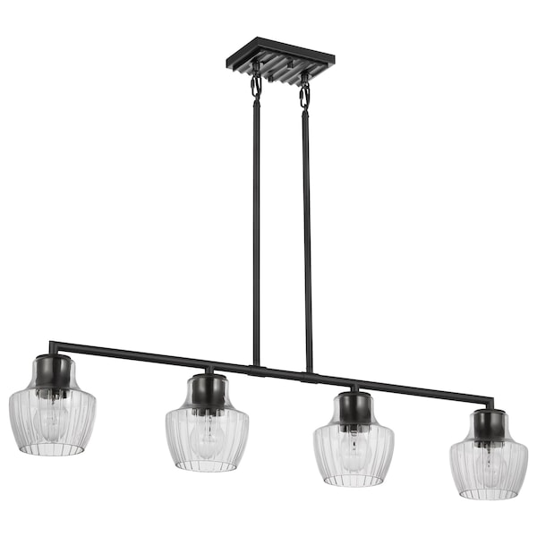 Destin 4-Light Island Pendant, E26 60W, Black And Silver Accent, Clear Ribbed