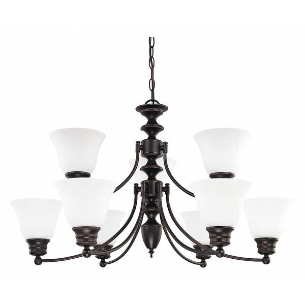 The Ballerina 60-3171 9 light, 32 inch chandelier features a deep rich mahogany bronze finish, accented by frosted white glass. Illuminate bathrooms, foyers, or any room in the home that could use some extra lighting with this nine light chandelier. Stylish and elegant, impress your guests with this sophisticated chandelier.