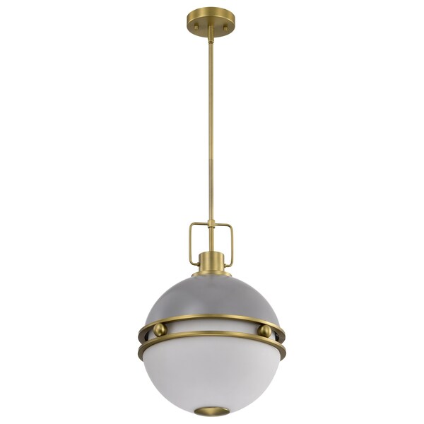 Modern illumination with beautiful, subtle details, elevates the Everton 60-7877 medium pendant's style to grand heights. With spherical, opal etched glass softly diffusing the-light, creating a warm and inviting glow. A rich brass finish is paired with a soft, matte gray, creating a wonderful balance of color. Your home is a haven and Everton is ideal for today's stylish luminaires.