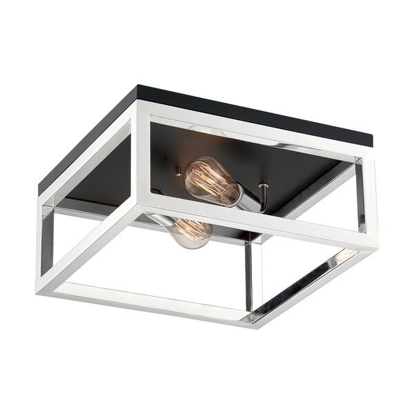 Cakewalk 2-Light Flush Mount Fixture - Polished Nickel Finish with Black Accents