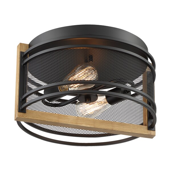 Atelier 2-Light Flush Mount Fixture - Black and Honeywood Finish