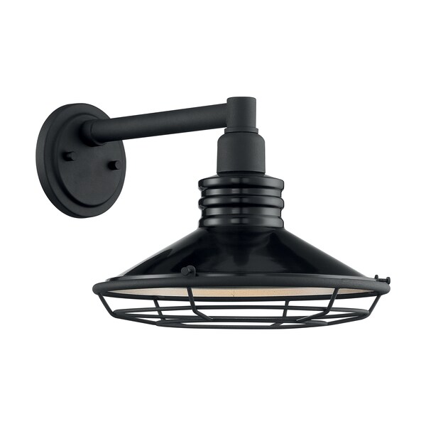 Blue Harbor 1-Light Large Outdoor Wall Sconce Fixture - Gloss Black Finish with Silver and Textured Black Accents