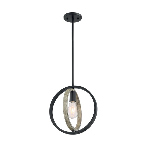 Augusta 1-Light Mini Pendant Fixture - Black with Gray Wood Finish
