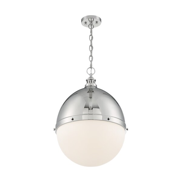 Ronan 1-Light Large Pendant Fixture - Polished Nickel Finish with Etched Opal Glass