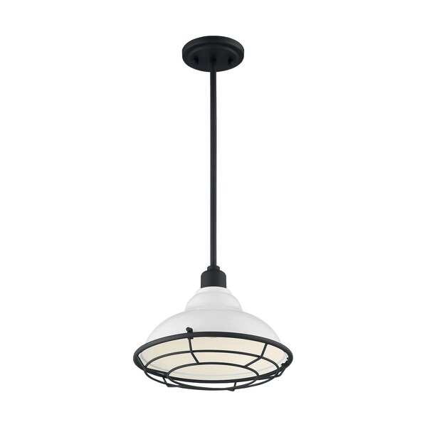 Newbridge 1-Light Large Pendant Fixture - Gloss White Finish with Textured Black Accents