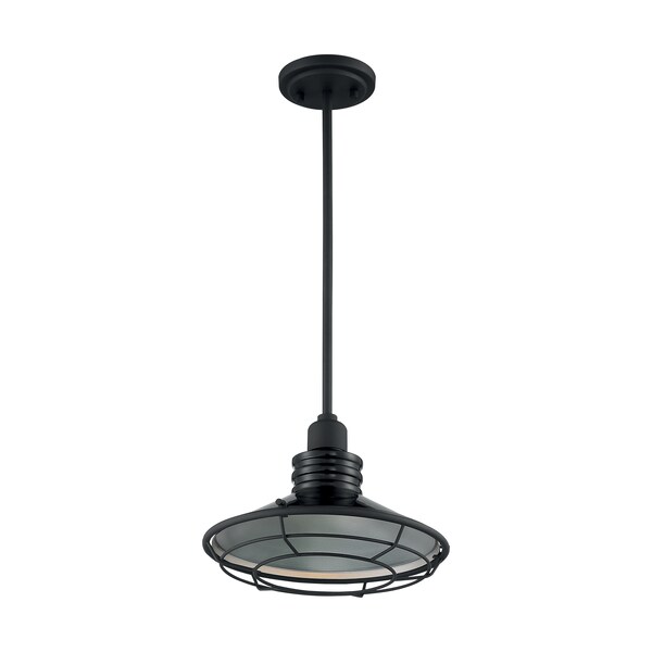 Blue Harbor 1-Light Large Pendant Fixture - Gloss Black Finish with Silver and Textured Black Accents
