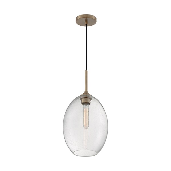 Aria 1-Light Medium Pendant Fixture - Burnished Brass Finish with Clear Seeded Glass