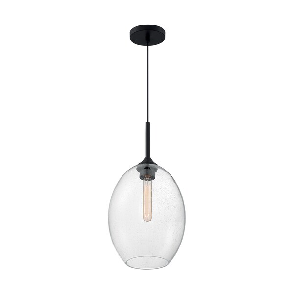 Aria 1-Light Medium Pendant Fixture - Matte Black Finish with Clear Seeded Glass