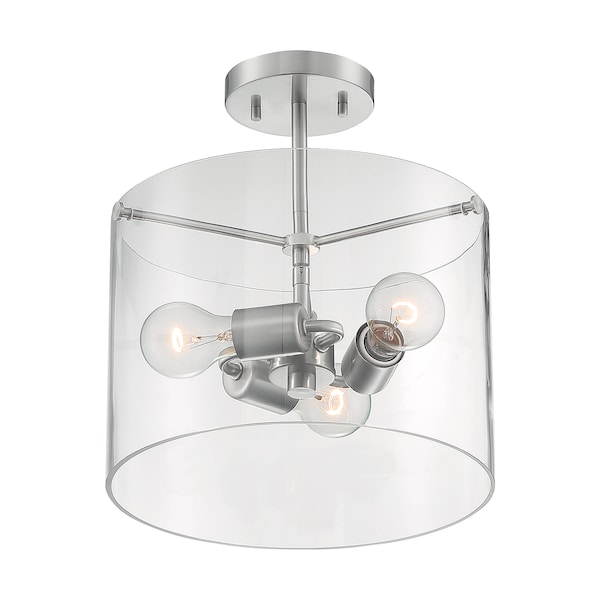 Sommerset 3-Light Semi-Flush Fixture - Brushed Nickel Finish with Clear Glass