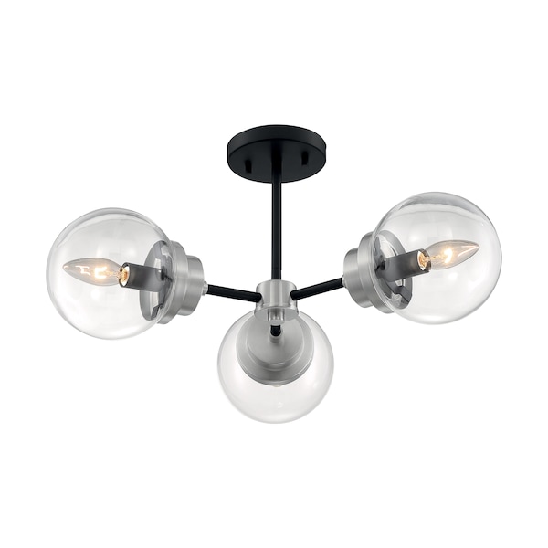 Axis 3-Light Semi-Flush Fixture - Matte Black Finish with Brushed Nickel Accents Clear Glass