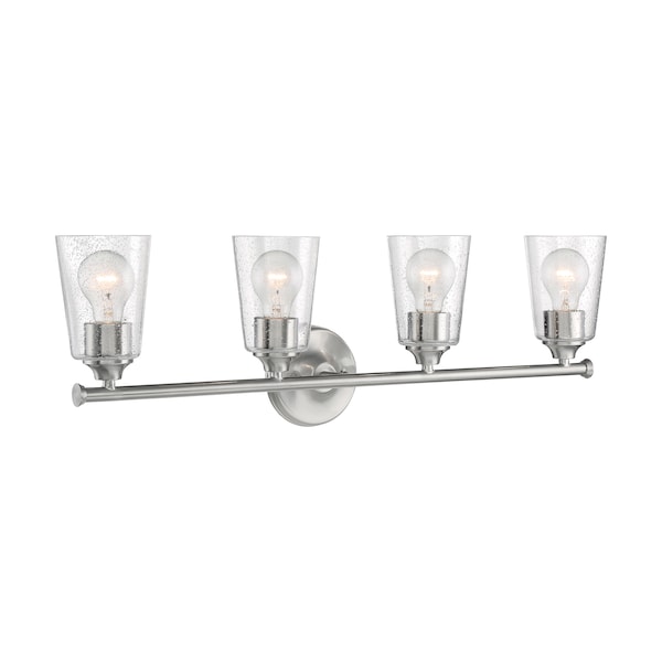 Bransel 4-Light Vanity Fixture - Brushed Nickel Finish with Clear Seeded Glass