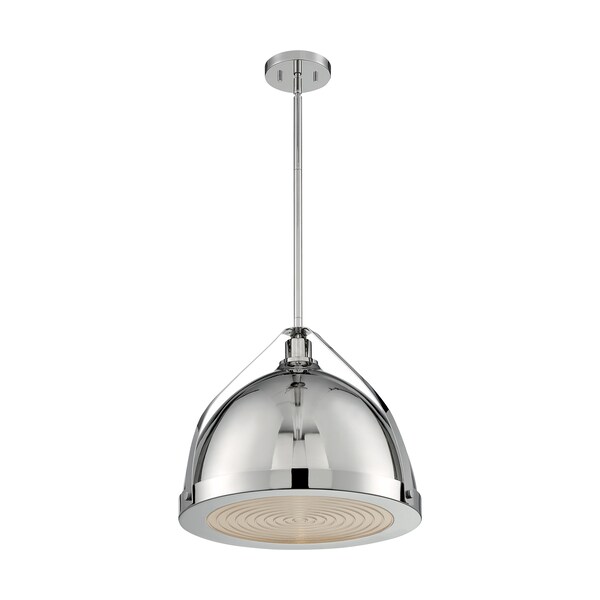 Barbett 1-Light Large Pendant Fixture - Polished Nickel Finish with Fresnel Glass