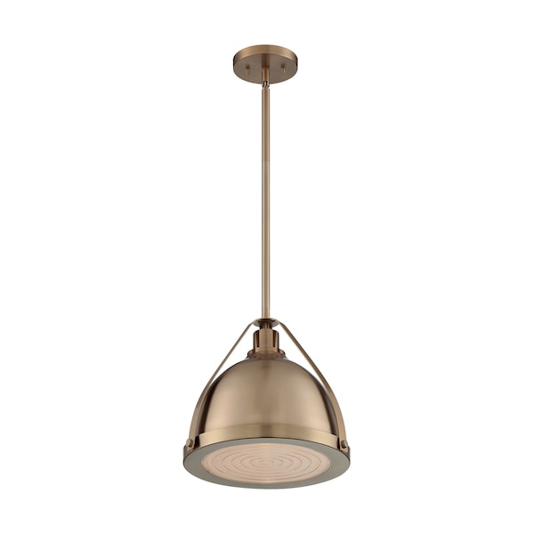 Barbett 1-Light Medium Pendant Fixture - Burnished Brass Finish with Fresnel Glass