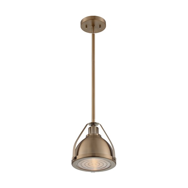 Barbett 1-Light Small Pendant Fixture - Burnished Brass Finish with Fresnel Glass