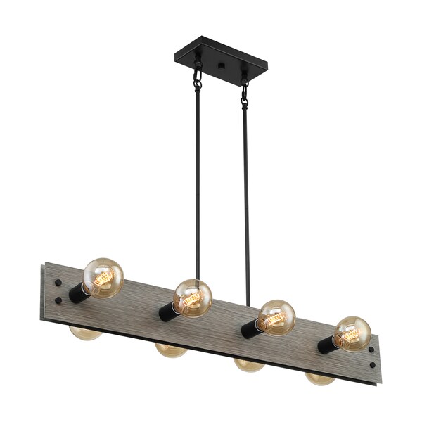 Stella 8-Light Island Pendant Fixture - Driftwood Finish with Black Accents