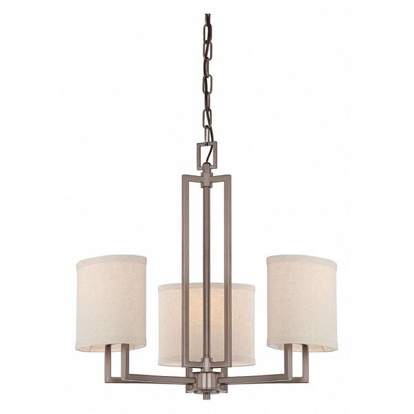 Gemini 3 Light Chandelier Khaki Fabric Shades Hazel Bronze (Discontinued)