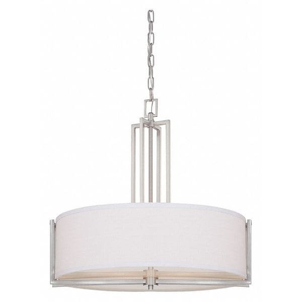 The Gemini 60-4756 4 light pendant is a relaxed, contemporary design which utilizes basic geometric design elements to achieve form and balance. Illuminate living rooms, dining rooms, and foyers with this sleek pendant. Elegant and stylish, the brushed nickel finish and slate gray fabric shade adds sophistication to any home.