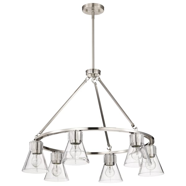 Gianna, 6 Light Chandelier, Brushed Nickel Finish, Clear Glass