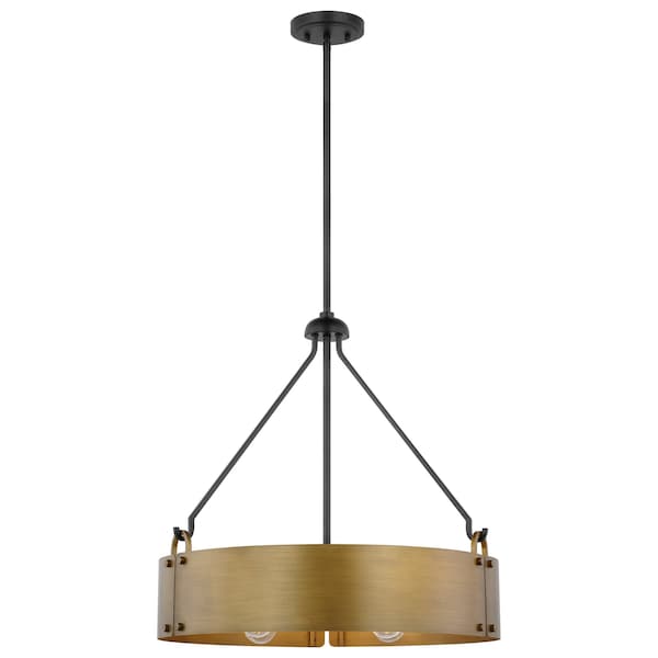 Halter 4-Light Pendant, E26 60W, Matte Black, Natural Brass Metal Shade