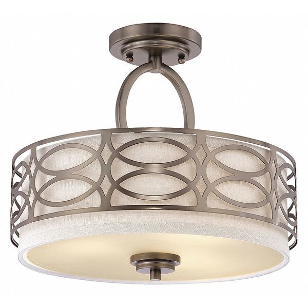 Semi Flush Fixture,3L,FabricShade,Bronze